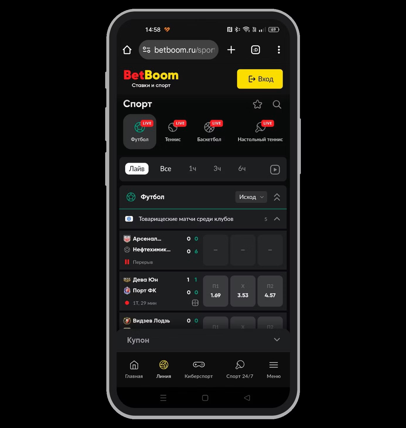 BetBoom предлагает довольно выгодные котировки, особенно на топ-событиях. Средняя маржа по рынку — около 5–6%, но на популярных лигах часто ниже.