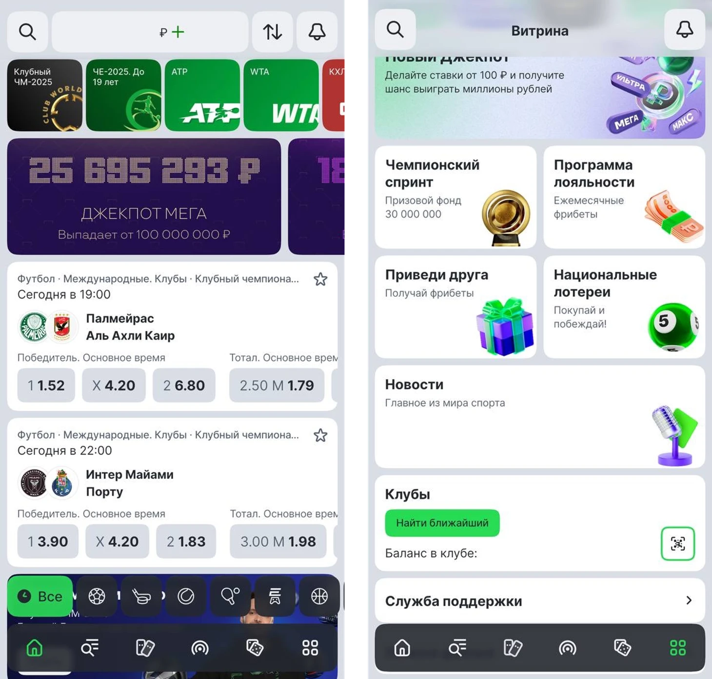 Любимый клуб — выберите команду («Спартак», «Зенит», «Краснодар» и др.) → получаете повышенный кэф + персональный раздел.