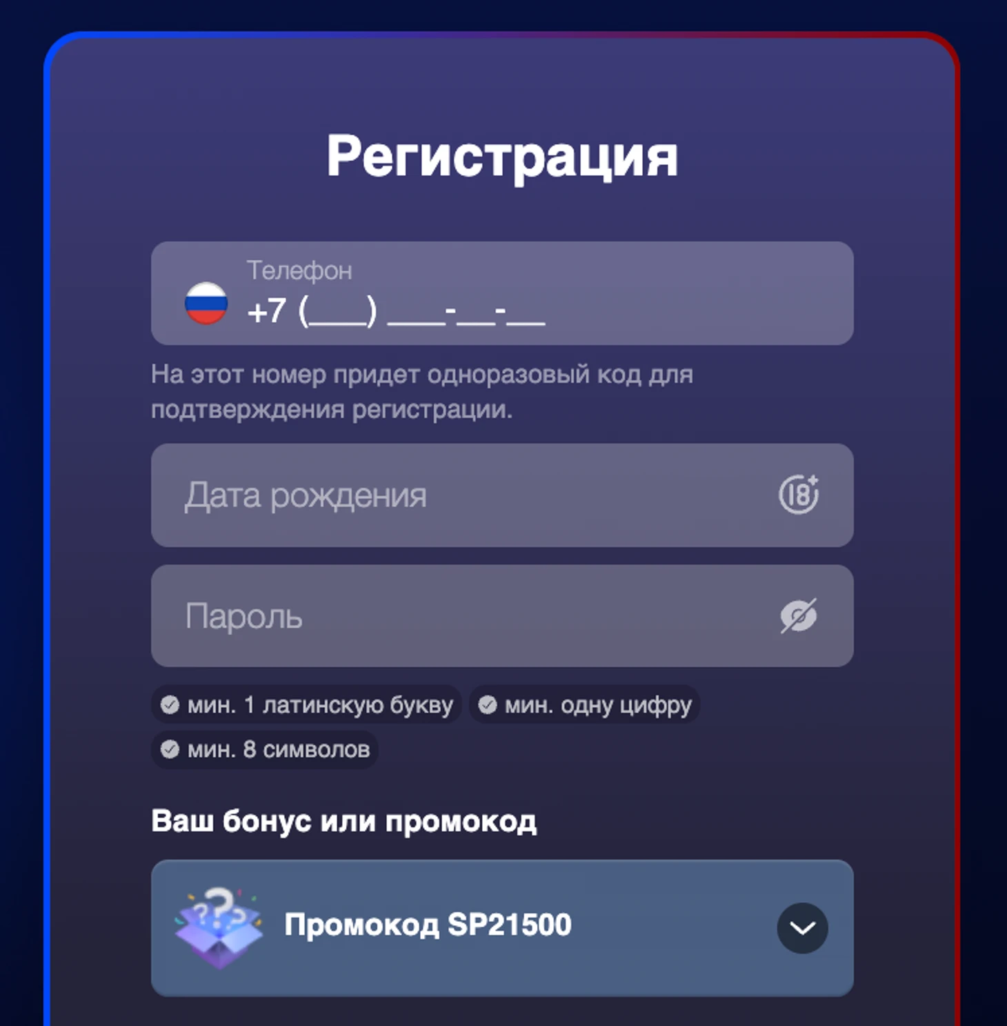 • Первый депозит должен быть единоразовым — разбиение на мелкие платежи не засчитывается.