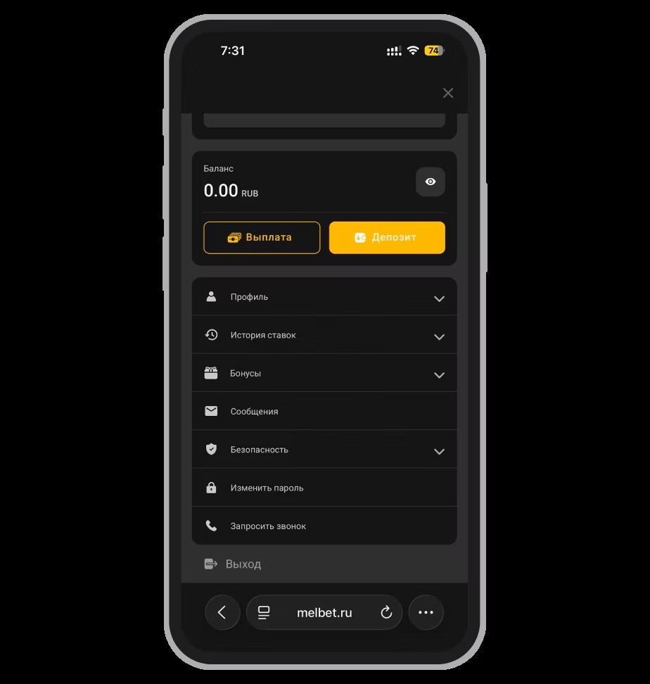 Главный сайт — www.melbet.ru (только русский язык, валюта — рубли).