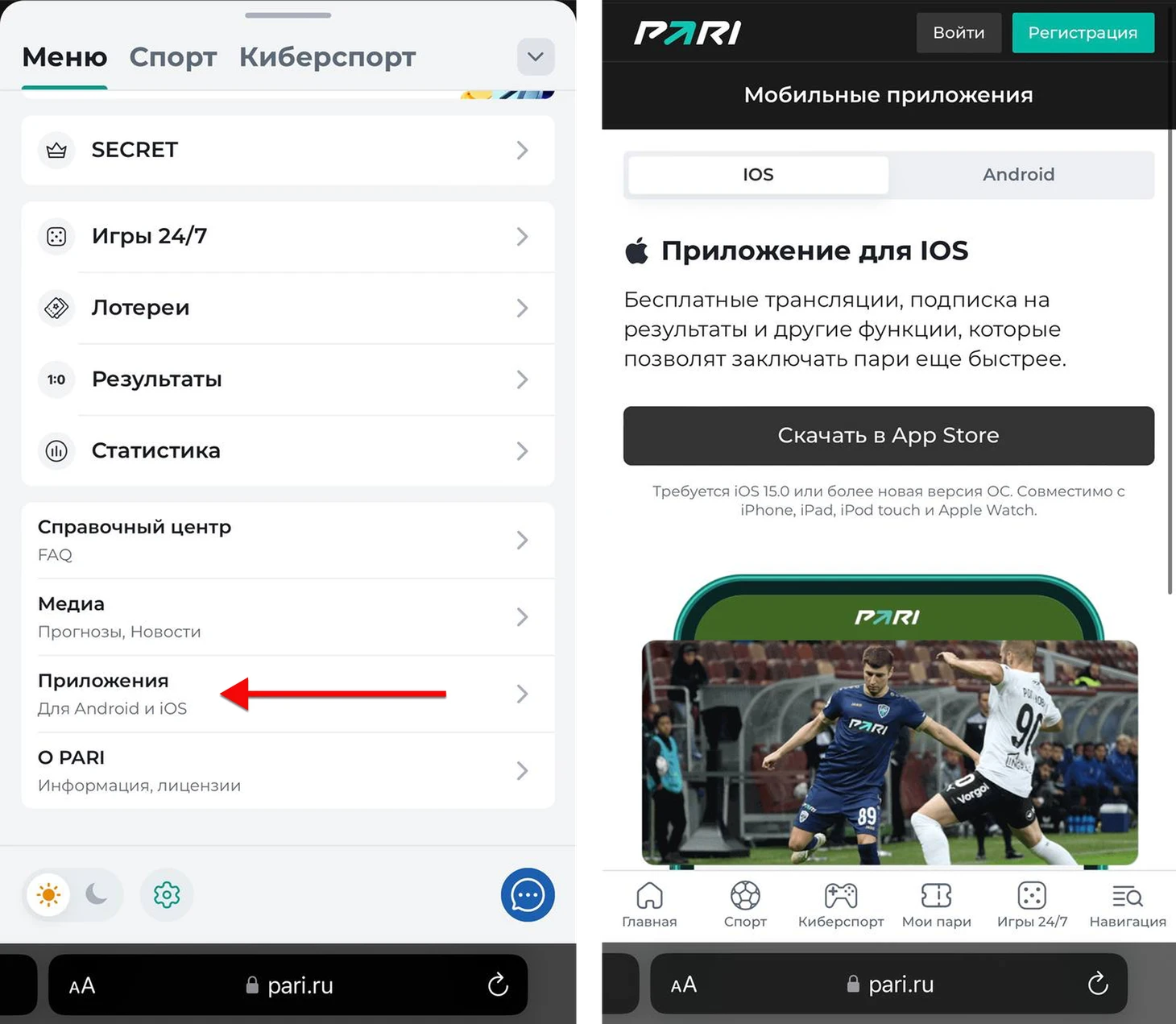 Приложение PARI для iOS — удобный и полный инструмент для ставок: быстрый интерфейс, трансляции, все акции (включая фрибет до 20 000 ₽ по промокоду SPORTS20) и мощный функционал. Скачивайте из App Store и начинайте играть с бонусом уже сегодня!