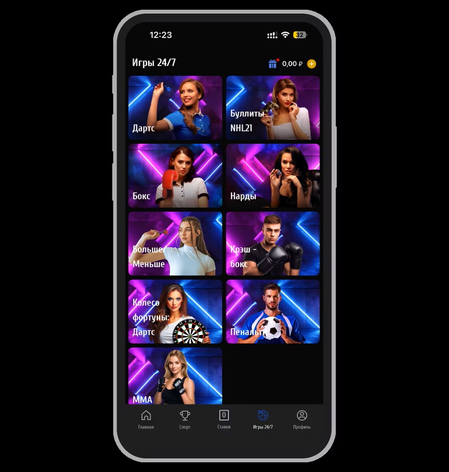 Отдельный раздел с моментальными ставками: дартс, бокс, нарды, MMA и др.